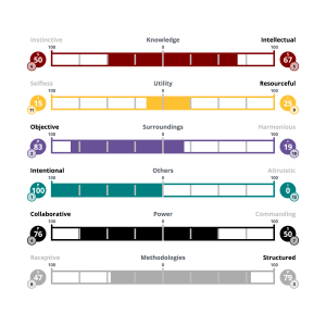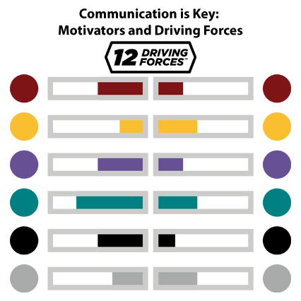 Within each motivator, there are 2 ends of the continuum which gives us the 12 driving forces. Depending upon which end of the continuum you align with, determines what “drives” you. For example, within the knowledge motivator, you could either be driven to acquire knowledge simply because you love to learn OR you are driven to only acquire knowledge when you need it for a specific reason.