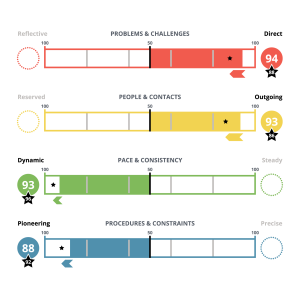However, our assessment is transitioning away from the highs and lows, and moving towards a continuum with descriptive words. Now a High D is called a Direct person and a Low D is a Reflective person. These descriptive words makes it easier to understand how the person behaves.
